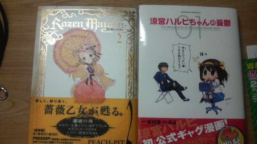 「新装版ローゼンメイデン2巻」と「涼宮ハルヒちゃんの憂鬱」という本です。