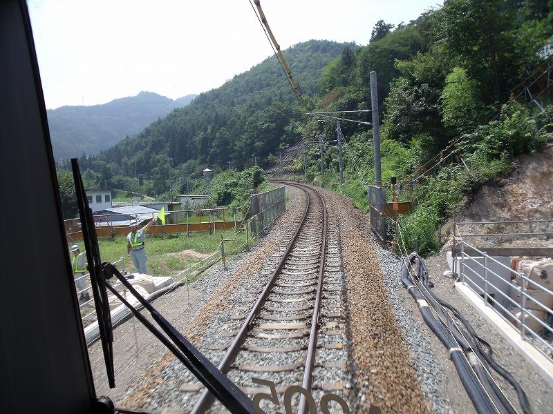 新幹線よりもかなり速度が遅いので、軌道の様子がよく見えました。