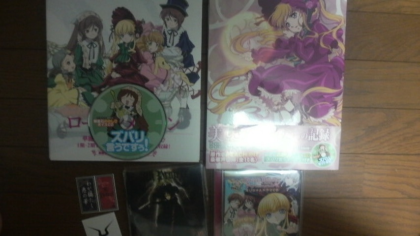 ローゼンのイラスト集2冊とドラマCD、アリプロの新曲「わが臈たし悪の華」のシングルです。