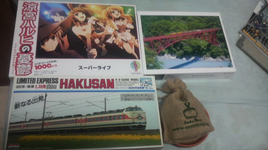 ASASHINからはHOゲージ489系特急白山のプラモデルと黒部峡谷鉄道の500ピースパズルを貰いました。