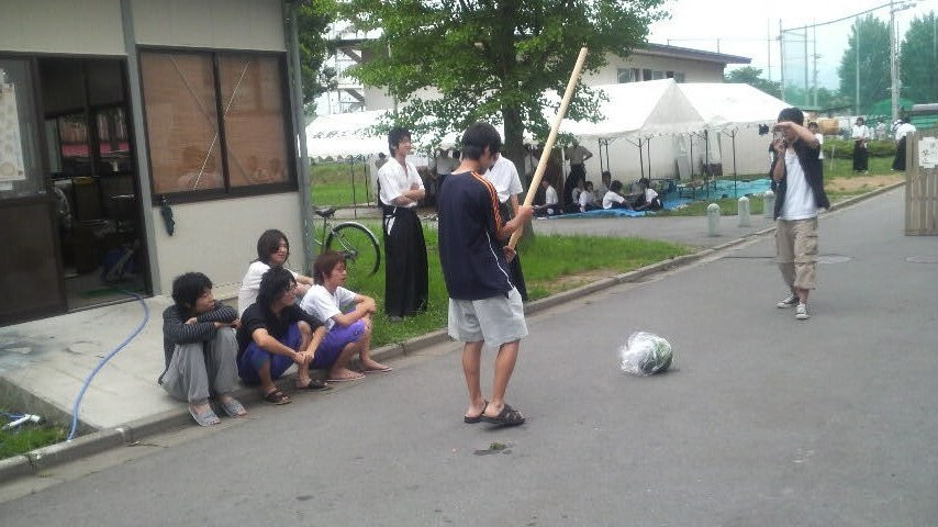 友人が参加しましたが、スイカは割れずに棒が割れました。