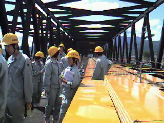 まずは工事事務所でトラスのかけ方の話を聞いた後、まだ骨組みができたばかりのトラス部へGO!!