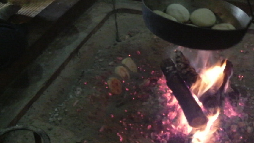 八坂のおやきは灰の中で焼くんだよね、知らない人が見たらびっくりかな?